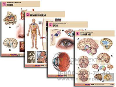 Комплект содержит: 1. Учебное пособие "Человек и его здоровье. Регуляторные системы. Методические рекомендации" (Авторы: З.В. Любимова, В.М. Константинов). 2. Комплект учебно-наглядных пособий формата А1 с полноцветной двухсторонней печатью и матовой двухсторонней ламинацией в количестве 10 таблиц. Перечень таблиц: 1. Эндокринные железы. 2. Иммунная система. 3. Нервная система. 4. Нервная клетка. 5. Головной мозг. 6. Спинной мозг. Рефлекторная дуга. 7. Зрение. 8. Слух и равновесие. 9. Обоняние. 10. Вкус.