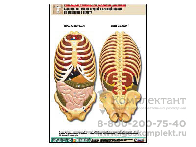 Рельефная таблица Расположение органов грудной и брюшной полостей по отношению к скелету(А1, лам.)