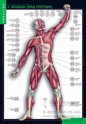 Скелет. Мышцы (вид спереди). Мышцы (вид сзади). Кровеносная и лимфатическая системы. Дыхательная система. Пищеварительная система. Выделительная система. Нервная система. Женская половая система. Мужская половая система.Раздаточный материал - карточки 80 шт.