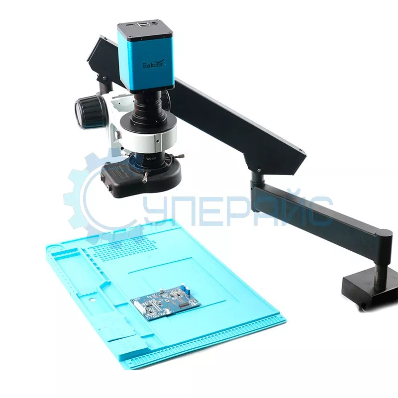 Паяльный микроскоп на кронштейне Eakins HHC202 предназначен для работы с мелкими деталями разного профиля. Конструкция с регулируемым кронштейном способствует устойчивому положению основного рабочего узла над областью интереса.