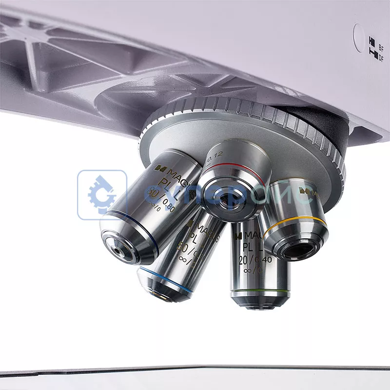 Объектив | планахроматические, скорректированные на бесконечность: PL L5 X / 0,12 BD, PL L10 X / 0,25 BD, PL L20 X / 0,40 BD, PL L50 X / 0,70 BD, PL L80 X / 0,80 BD; парфокальная высота 45 мм |