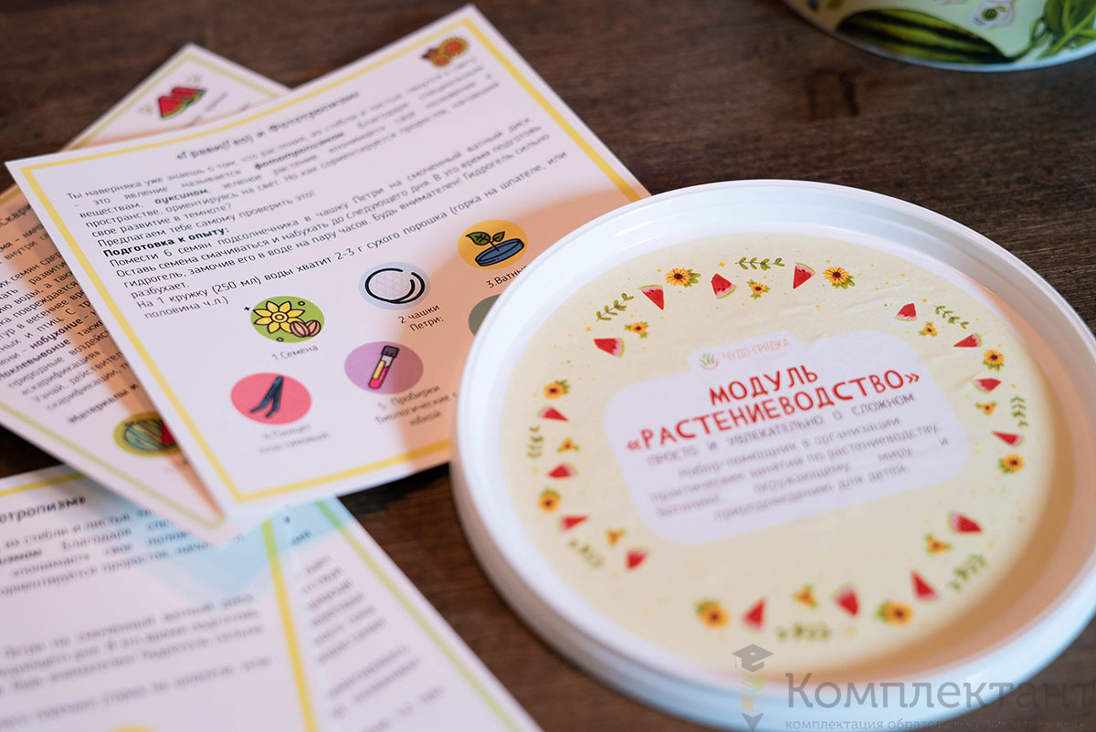 - специально подобранные наборы семян с гарантированным показателем всхожести (не менее 80%) для достижения гарантированных результатов экспериментов.