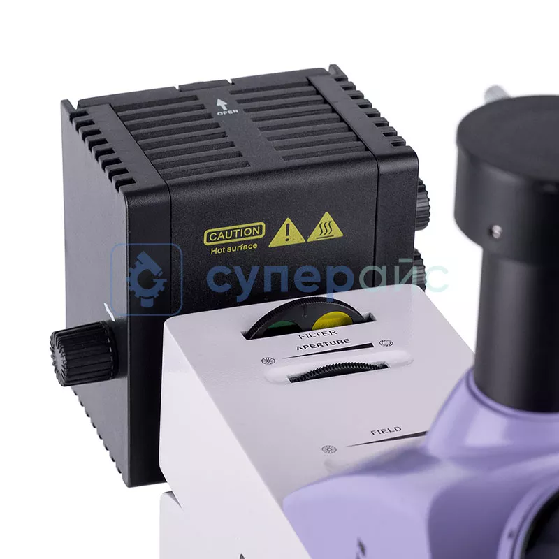 Конденсор | проходящий свет: центрируемый и регулируемый по высоте конденсор Аббе NA 1,25 с регулируемой апертурной диафрагмой и откидной линзой; тип крепления «под винт» |