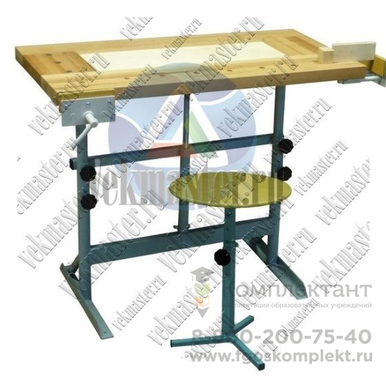 Верстак столярный ученический (школьный) 1000х500х690…900 в комплекте табурет, два столярных прижима. Верстаки ВСТ-У и ВСТ-УП предназначены для выполнения столярных и графических работ в школьных мастерских на занятиях по трудовому обучению. Комплектуются табуретом, двумя столярными прижимами. Столешница – массива дерева твердых пород – бук. Высота столешницы регулируется по росту учащегося от 690 мм до 900 мм, высота табурета регулируется – от 350мм до 510мм/от 460мм до 620мм. Размер столешницы: длина 1000/1200мм, ширина 500/600мм, толщина 24/40мм. Габаритные размеры верстака: Длина – 1070/1270мм, ширина – 570/670мм, высота - 690-900мм. Масса не более 40/50кг. Порошково-полимерное покрытие. Наличие отверстий для крепления к полу. Отгружаются в разобранном виде.