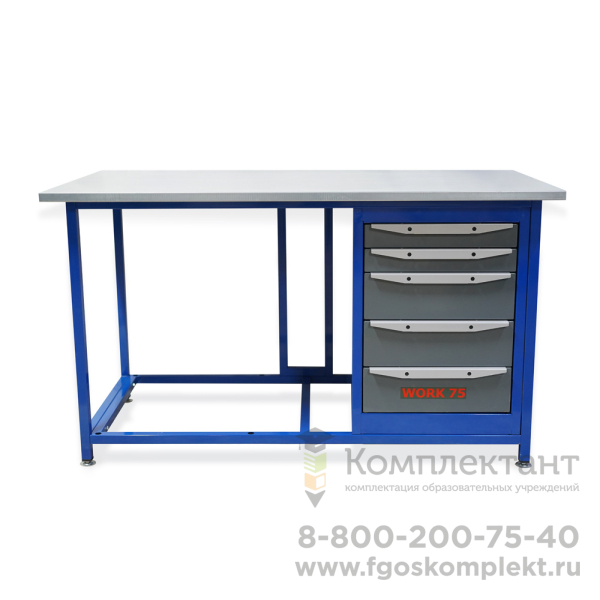 Столешница изготовлена из фанеры 24мм и закрыта стальным оцинкованным листом 1,2мм. Глубина столешницы 750мм. Максимальная распределенная нагрузка на столешницу до 350кг.
