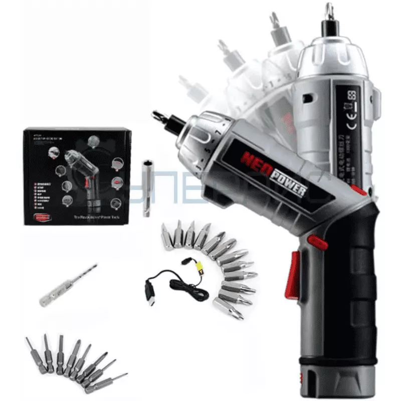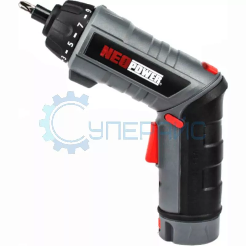 Электроотвертка NeoPower CS37 поставляется в расширенном наборе с 20 битами, удлиняющей насадкой, сверлом и зарядным шнуром. Купить шуруповерт в интернет магазине «Суперайс» можно с бесплатной доставкой в Москву, Владивосток, Краснодар, Казань и другие города России. На товар действует гарантия 1 год.