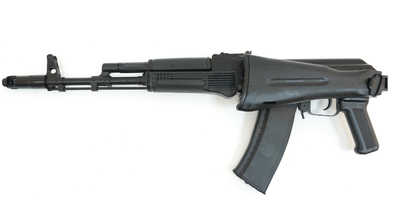 АК74М - модернизированная версия АК74, стал использоваться вместо АК74, АКС74 и ночных вариантов. Имеет складывающийся влево пластиковый приклад.