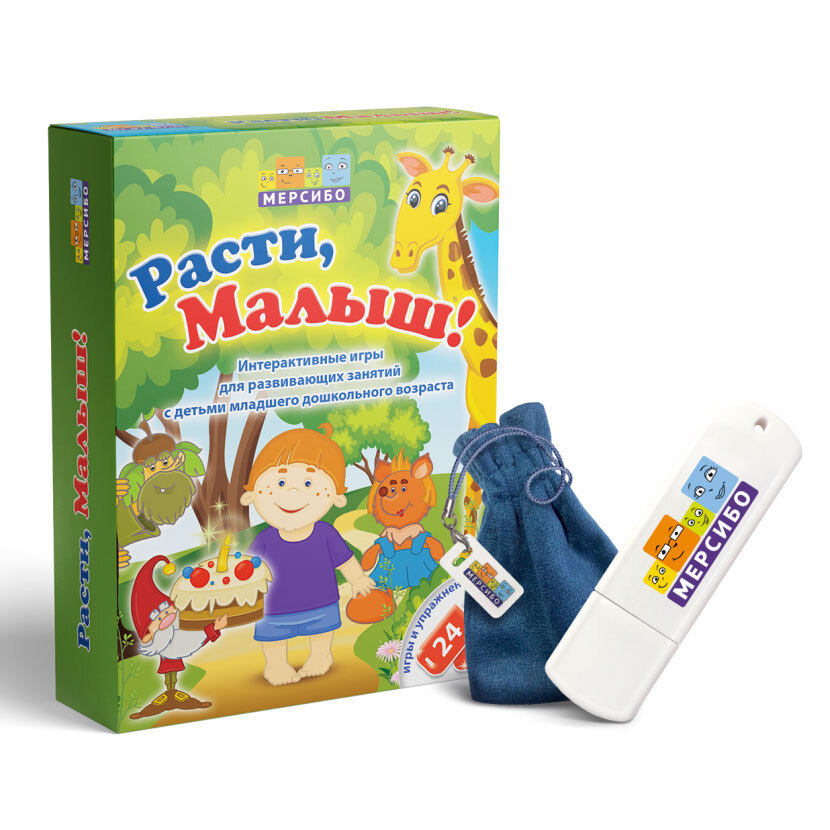 Программа Мерсибо "Расти, малыш!" включает современные развивающие игры, которые, безусловно, заинтересуют любого ребёнка. Игры специально разработаны для развития речи, активизации логического мышления, обучения основам счёта, знакомства с окружающим миром (природа, животный мир и т.д.), пополнение словарного запаса, работы с диалогами и многое другое. Задания в играх достаточно разнообразные, чтобы ребёнок не заскучал и развивался в различных областях. Например, игра с эмоциями (научиться называть и понимать выраженные эмоции на лицах), игра для запоминания и называния разных цветов, игра с прямым взаимодействием (подуть в микрофон, чтобы снежинки в игре разлетелись и продолжить задание) и т.д. Игры достаточно короткие, простые, ребёнок не устанет, выполняя задания. Также в играх нет ограничений по времени, ребёнок может выполнять задание в своём темпе. В некоторых играх можно внести технические изменения соответственно способностям и возможностям Вашего ребёнка. Для детей от 2-х лет. Программу могут приобрести родители в качестве домашнего обучения, воспитатели дополнительных учреждений, а также специалисты, занимающиеся развитием и обучением детей младшей возрастной категории. Флешка содержит 24 развивающие игрыДля кого предназначена: