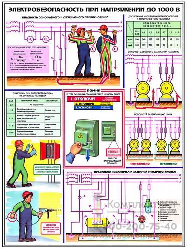 Электробезопасность при напряжении до 1000 Вт (3 плаката, ламин.)